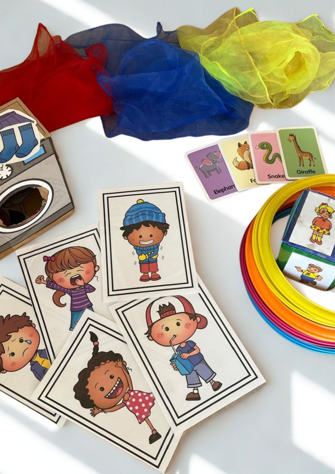Es werden Themen behandelt, die dem Alter der Kinder entsprechen und ihr Interesse wecken – zum Beispiel erste Zahlen, Farben, Tiere, Körperteile, Lebensmittel, Familienmitglieder, usw.